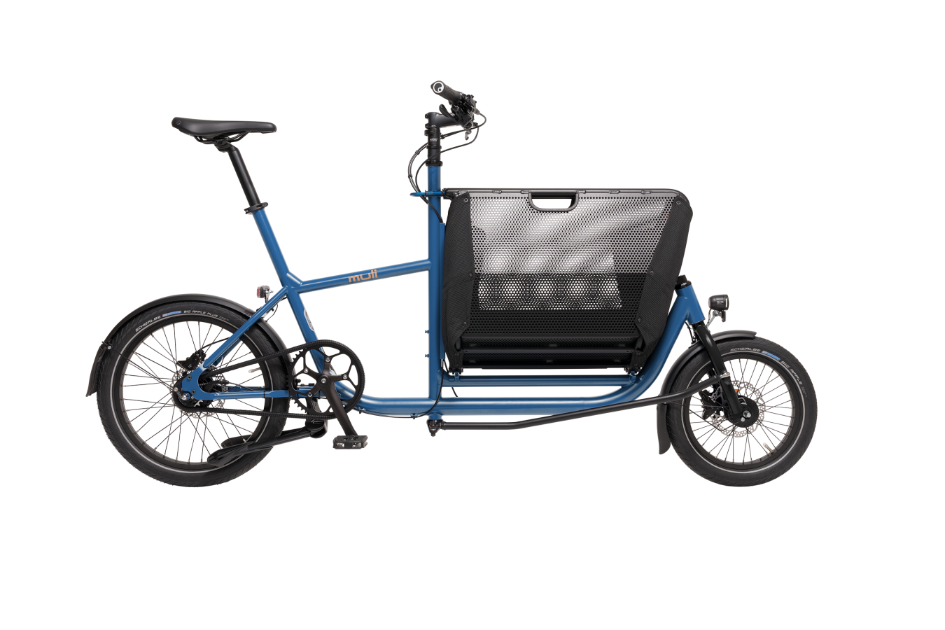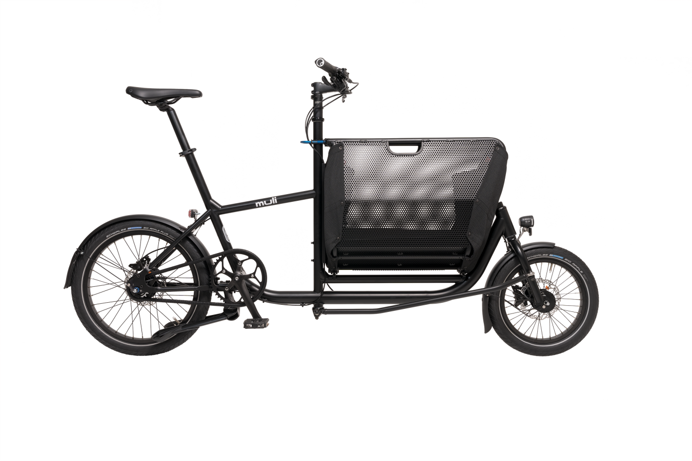 Muli Muskel compacte bakfiets met inklapbare bak. Wendbare cargo bike voor stadsgebruik, boodschappen en dagelijks transport.